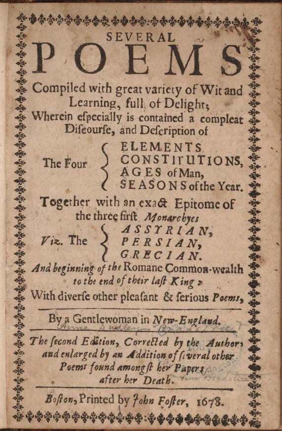 [1] Jeannine Hensley, The Works of Anne Bradstreet (Cambridge Massachusetts: Belknap Press of Harvard University Press, 1967), p. xlix.